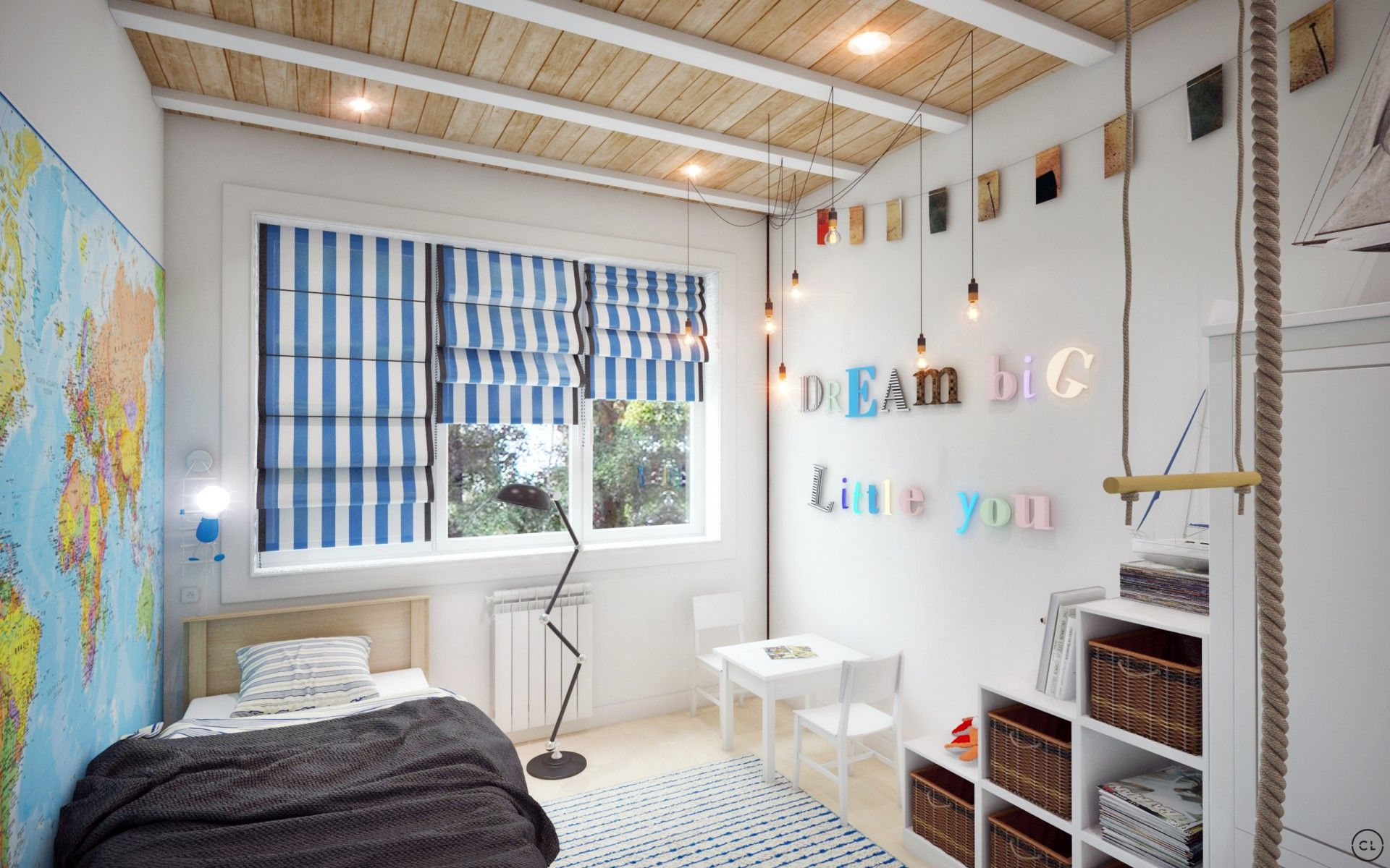 Для высоких потолков подойдут шторы с горизонтально расположенными ламелями. Вертикальные изделия используют для низких потолков. Для них выбирают конструкции светлых оттенков. Горизонтальные жалюзи цвета стен подходят для узких окон. Яркий декор не применяют в оформлении оконного проема, так как он отвлекает внимание.