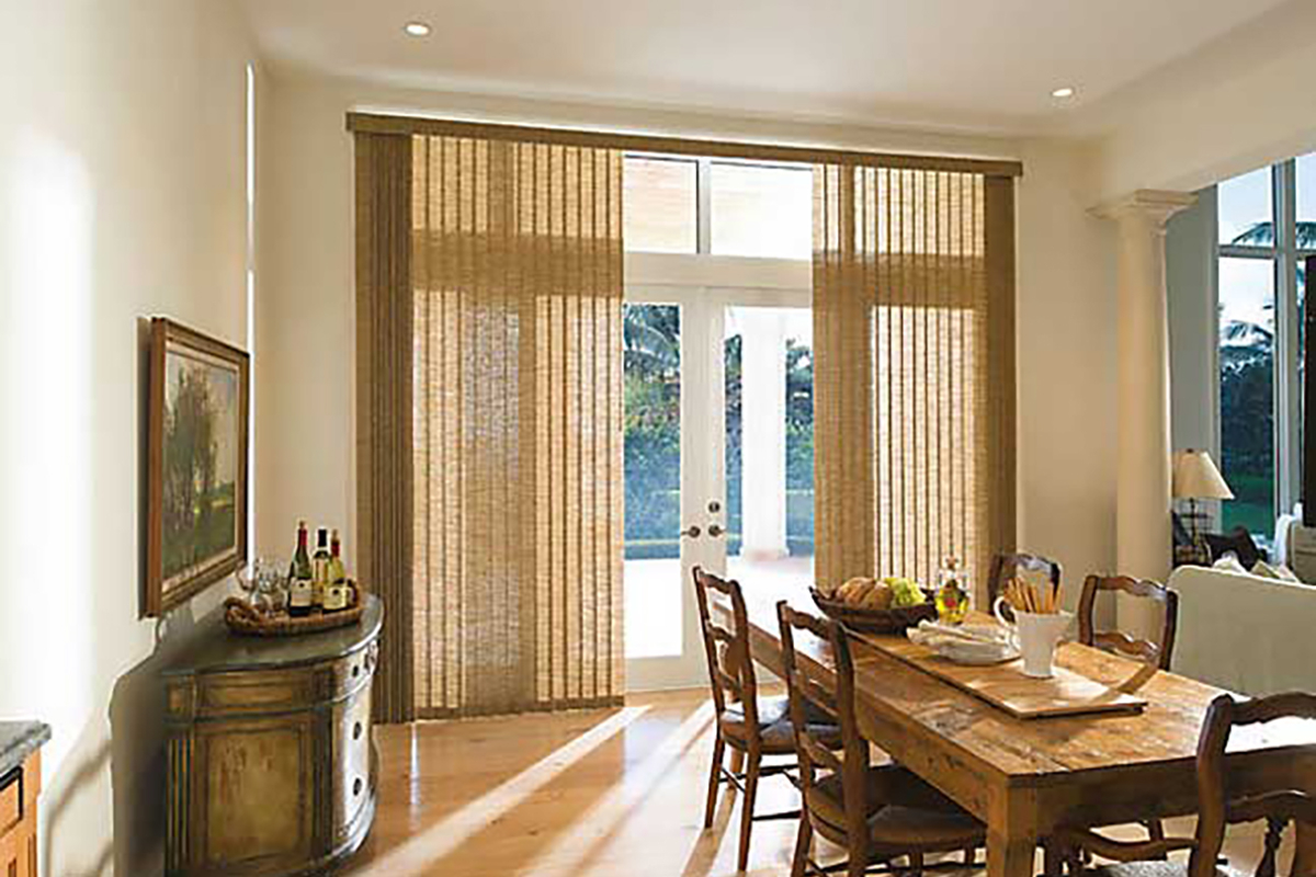 Не менее популярны вертикальные бамбуковые жалюзи. Достоинствами этого вида декора выступают: простота исполнения, возможность полностью открывать оконный проем. Ламели поворачиваются на 360 градусов.