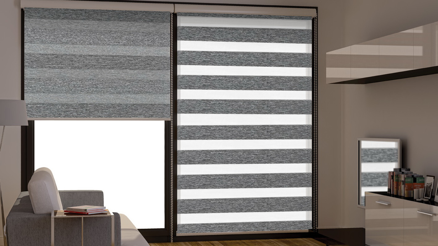 Другое название жалюзи день-ночь на пластиковые окна — «зебра». Это разновидность ролетов, в которой чередуются два вида полос — светлые (обычно прозрачные или полупрозрачные) и темные (плотные, не пропускающие свет искусственных источников или солнечные лучи).