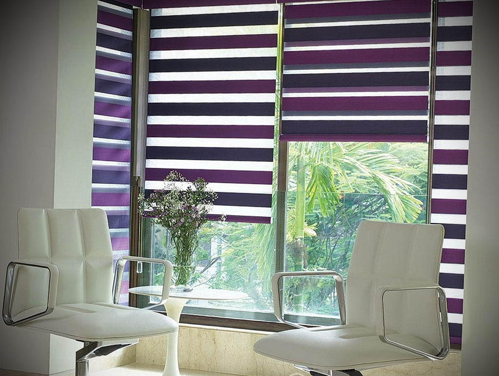 - фото жалюзи на пластиковые окна день-ночь подтверждают — занавеси универсальные и подходят как для офиса, так и для уютной спальни или детской комнаты;