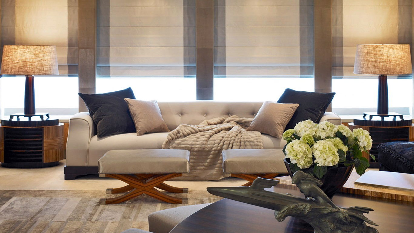 Римские шторы в интерьере выглядят очень красиво. Их можно полностью опускать. Благодаря этому помещение погружается в полумрак. Также изделие допустимо полностью поднимать. За счет этого комната наполняется максимальным количеством света. Если оставить конструкцию посредине, удается регулировать световой поток.