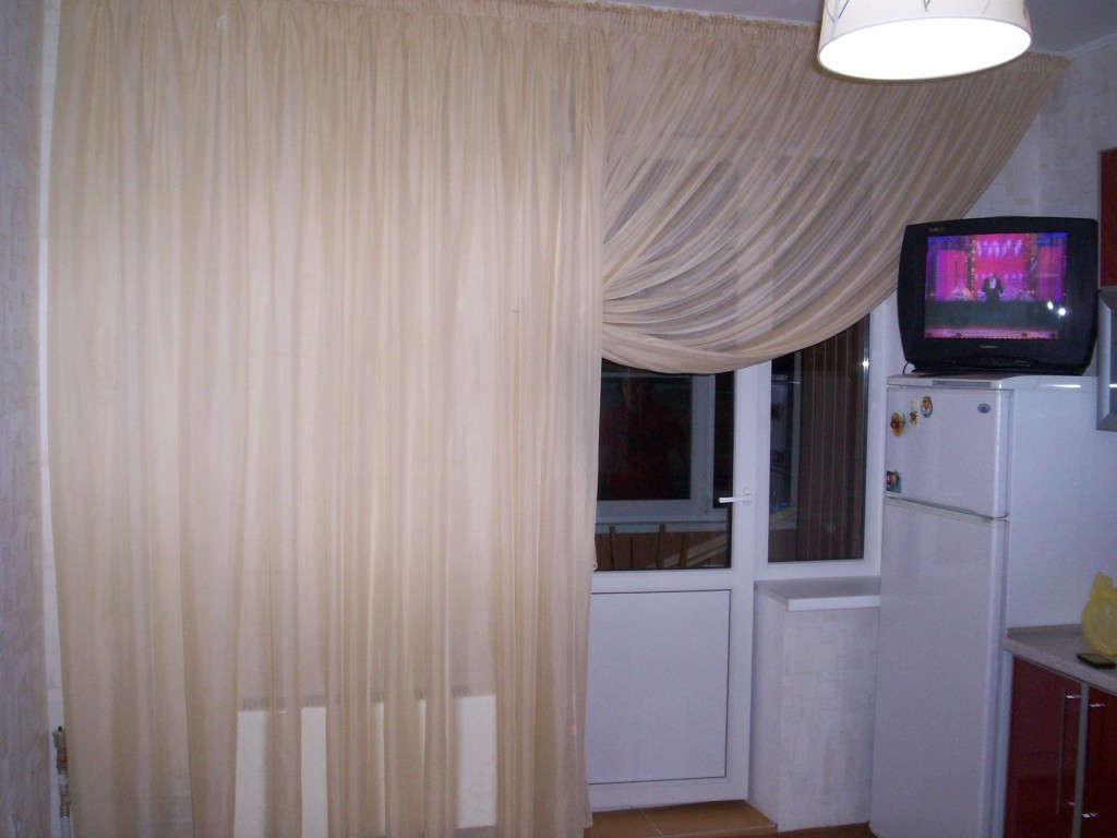 При подборе штор на окно с балконной дверью необходимо учитывать расположение балкона. Если балкон находится на кухне, то постоянно будет существовать перепад температур. Кухонная зона наполнена ароматами приготовленных блюд.