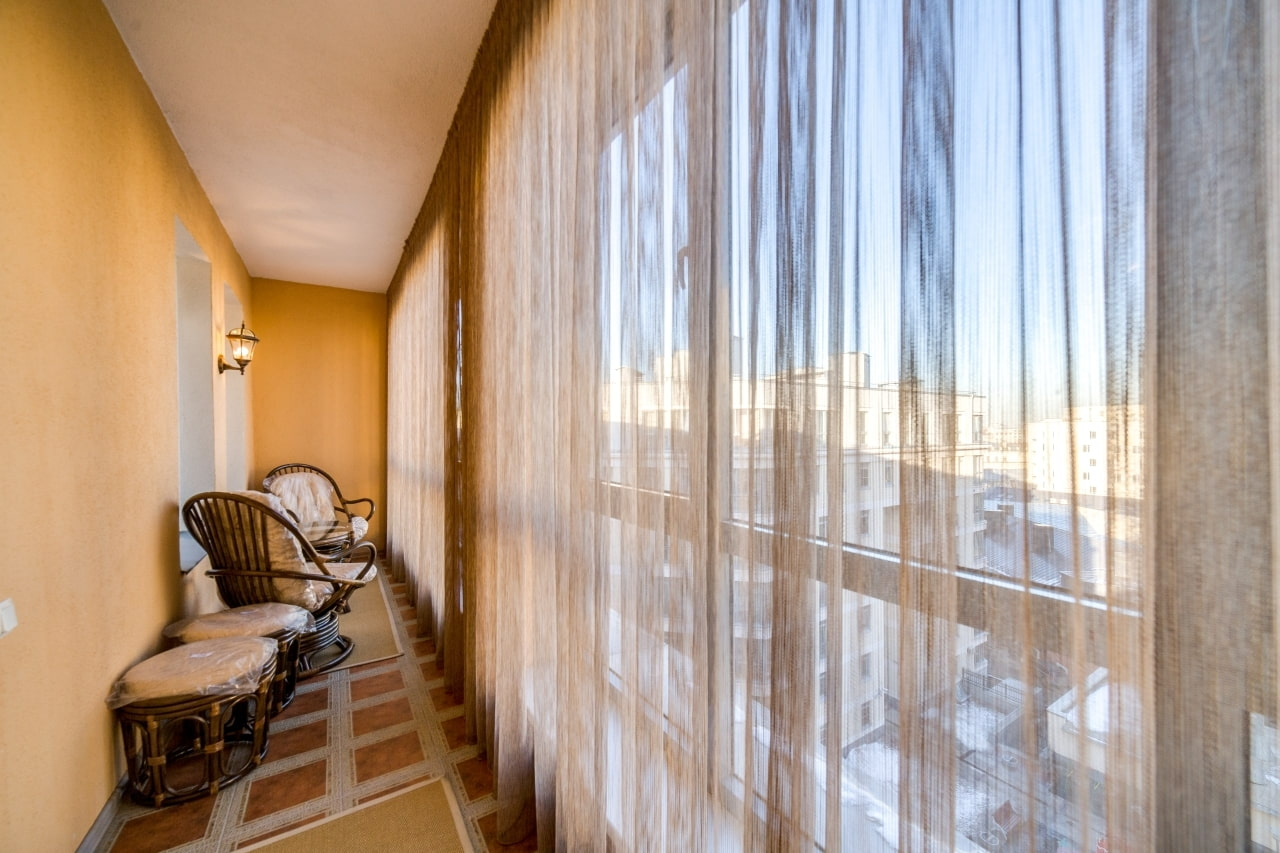- Для балкона небольшого размера более предпочтительно приобретать укороченные модели штор.